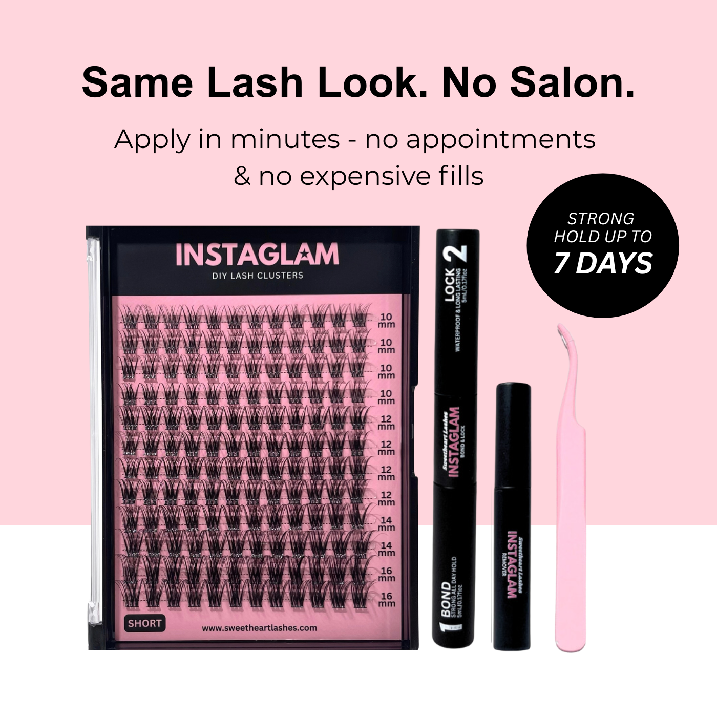 Our lash clusters are designed for easy, at-home application & removal, delivering a natural, wispy extension look that lasts up to 7 days. Waterproof and sweatproof for reliable, long-lasting wear.
