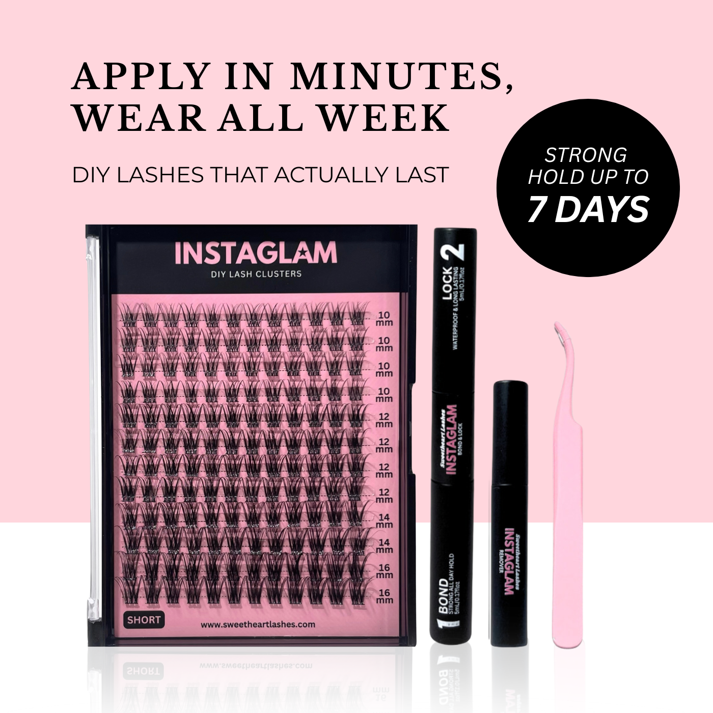 Get salon lashes at home with our DIY Cluster Lash Kits - designed for effortless application & easy removal. Waterproof & sweatproof. Lashes can lasts up to 7 days using our Bond + Lock Duo.